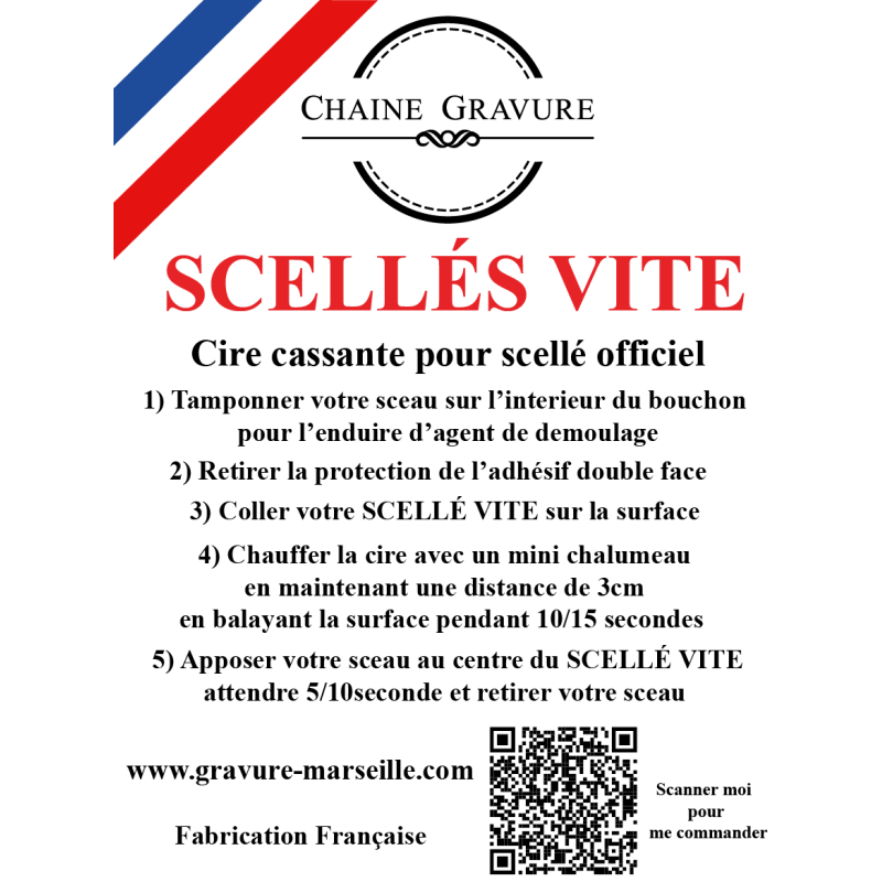 Utilisable avec des sceaux d'une dimension maximum de 30 mm de diamètre. L'idéal est un sceau de 25 mm ou de 30 mm de diamètre.