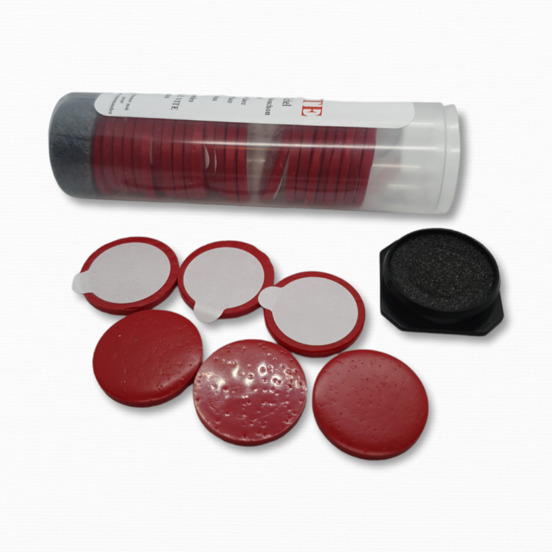 Boite de 30 pastilles de 30 mm de diamètre de cire dure officielle de couleur rouge, inviolable et cassante à froid, pour faciliter la pose de vos scellés.